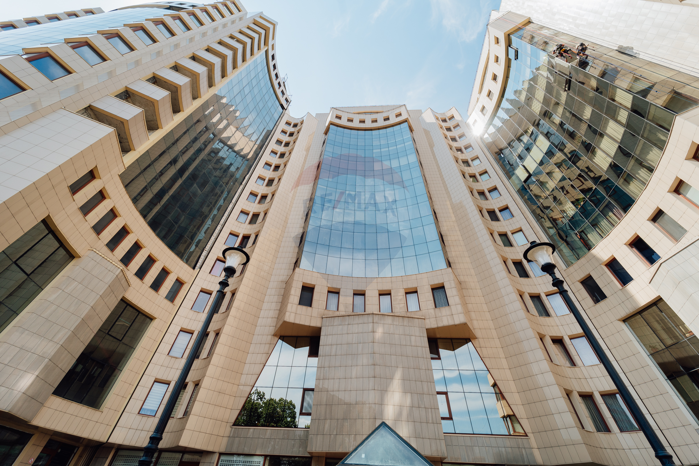 Fațada este termoizolată cu plăci din vată minerală, sistem ventilat, și finisată elegant cu granit și marmură, asigurând nu doar eficiență energetică, ci și un aspect estetic deosebit.